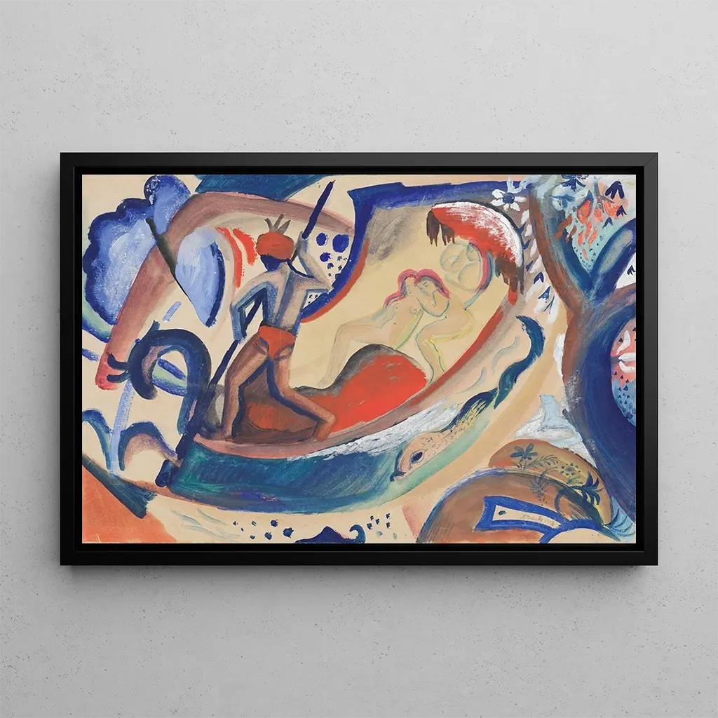 The art print of "Jeunes filles nues dans la barque" is a perfect addition to any interior decor. Whether you want to brighten a living room, add an artistic touch to an office, or create a serene atmosphere in a bedroom, this canvas will appeal. Its printing quality ensures a striking fidelity to the vibrant nuances of the original work, while offering a captivating aesthetic. By choosing this art print, you invite the spirit of freedom and joie de vivre of August Macke into your space, transforming your interior into a place of inspiration and beauty.