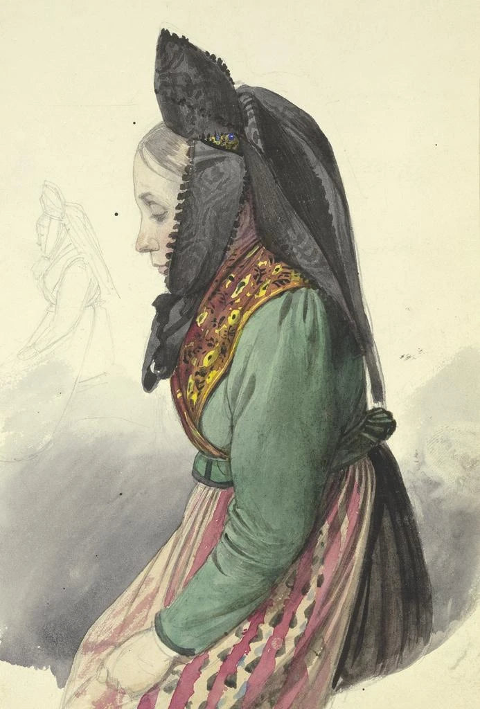 Young Peasant Woman Facing Left: An Art Print Infused with Simplicity and Grace