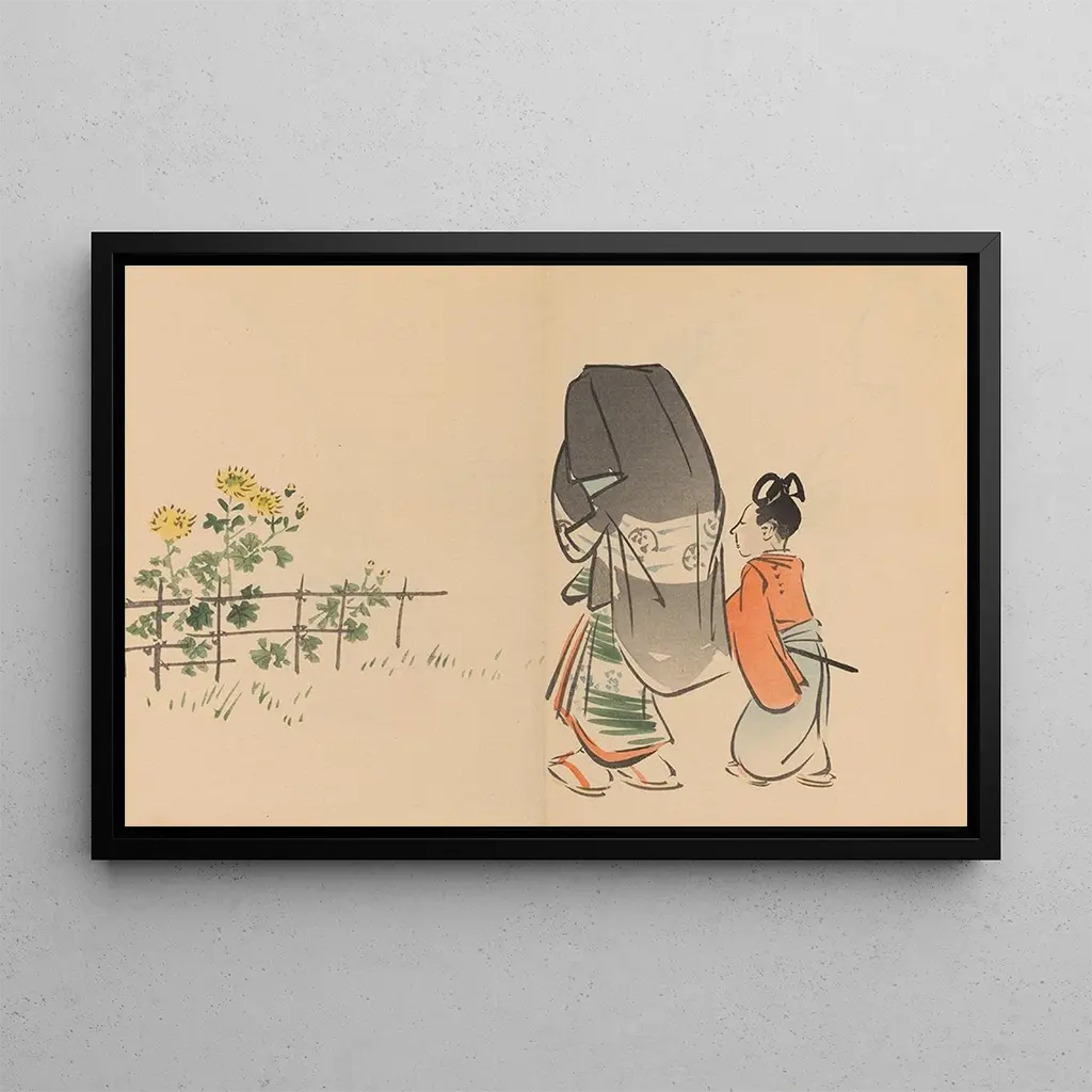 The art print Zeshin iboku tairyukyo gafu Pl. 09 transports us to a world where the delicacy of lines and the richness of colors intertwine to create a captivating atmosphere. This piece, emblematic of Japanese aesthetics, stands out with its refined floral motifs and subtle shades that evoke the serenity of Japanese landscapes. The silk painting technique used by Shibata Zeshin gives this canvas unparalleled depth and luminosity, inviting the viewer to engage in meditative contemplation.