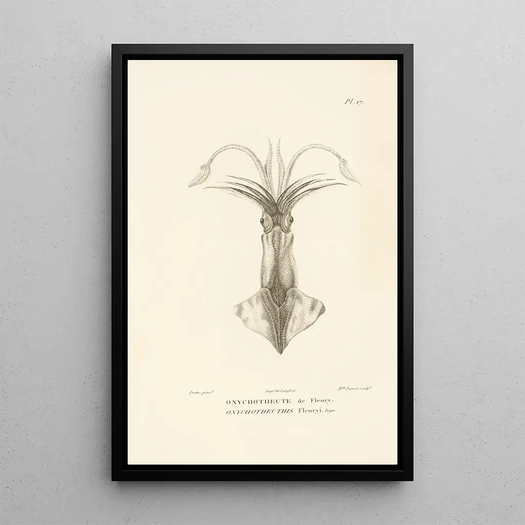 Centurie zoologique Pl17 : a celebration of biodiversity The art print of the Centurie zoologique Pl17 immerses us in a fascinating universe where nature is highlighted with remarkable precision. The vibrant colors and meticulous details of the depicted animals create a lively and dynamic atmosphere. Every element of the composition, from shimmering feathers to sparkling scales, testifies to a deep respect for wildlife. The engraving technique used by the artist allows capturing not only the physical appearance of the creatures but also their essence, inviting the viewer to an attentive contemplation of natural beauty. René Primevère Lesson : a pioneer of zoological illustration René Primevère Lesson, naturalist and illustrator of the 19th century, played a vital role in documenting the biodiversity of his time. Influenced by scientific discoveries of his era, he skillfully combined art and science in his works. His period of activity coincides with a growing interest in the study of nature, and his illustrations have become references for scientists and art enthusiasts. As a member of the Astrolabe expedition, Lesson expanded his knowledge of exotic wildlife, which is reflected in the richness of his works. A decorative acquisition with multiple assets The art print of the Centurie zoologique Pl17 is a decorative piece that fits perfectly into various spaces, whether a living room, an office, or a bedroom. Its print quality and fidelity to the original artworks guarantee an elegant and captivating aesthetic. By choosing this artwork, you add a touch of elegance and curiosity to your interior, while celebrating the beauty of the animal world. This canvas is sure to attract attention and spark conversations, making it a valuable addition to any art collection.